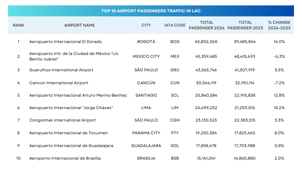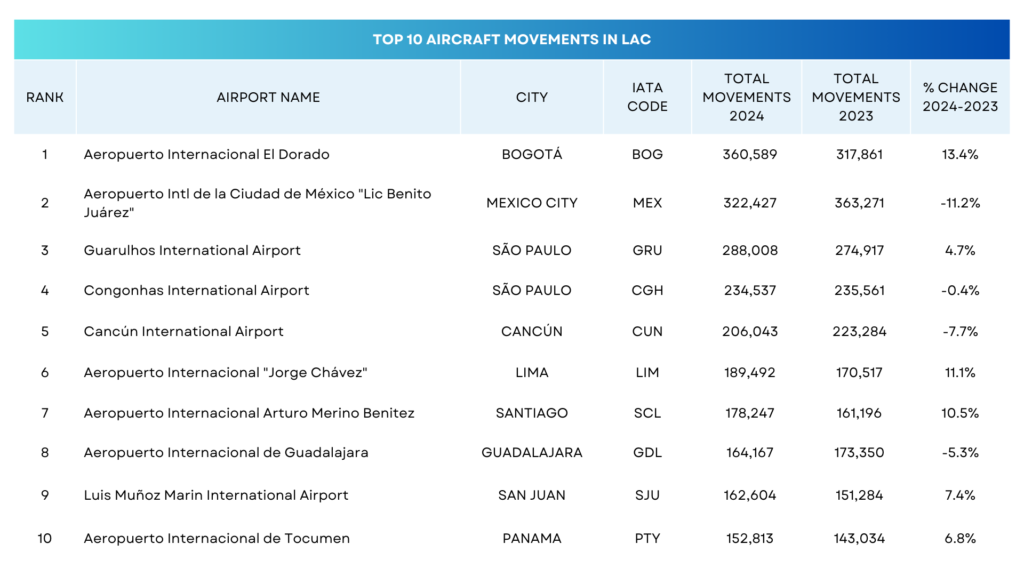 Los rankings de 2024 reflejan la heterogeneidad y dinamismo de una región donde el transporte aéreo es clave para su progreso socioeconómico y los aeropuertos juegan un papel cada vez más importante como motores de desarrollo.