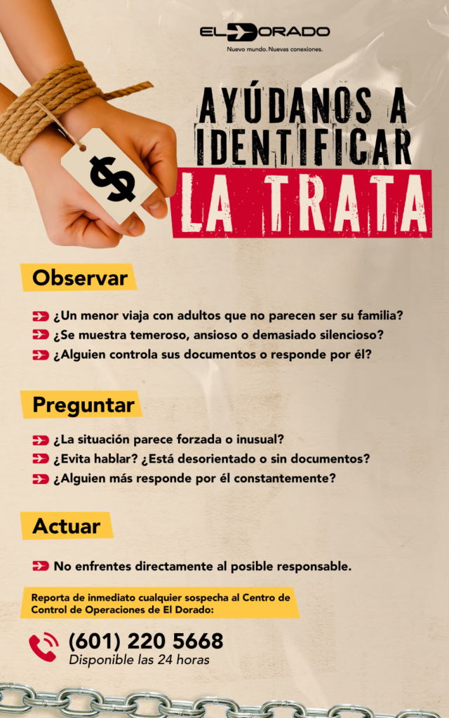 Conscientes de que los aeropuertos son escenarios estratégicos en contextos de tránsito, turismo y movilidad internacional, se han desplegado múltiples acciones orientadas a detectar señales de alerta, informar a los viajeros y brindar herramientas útiles a colaboradores para actuar oportunamente ante situaciones de riesgo.