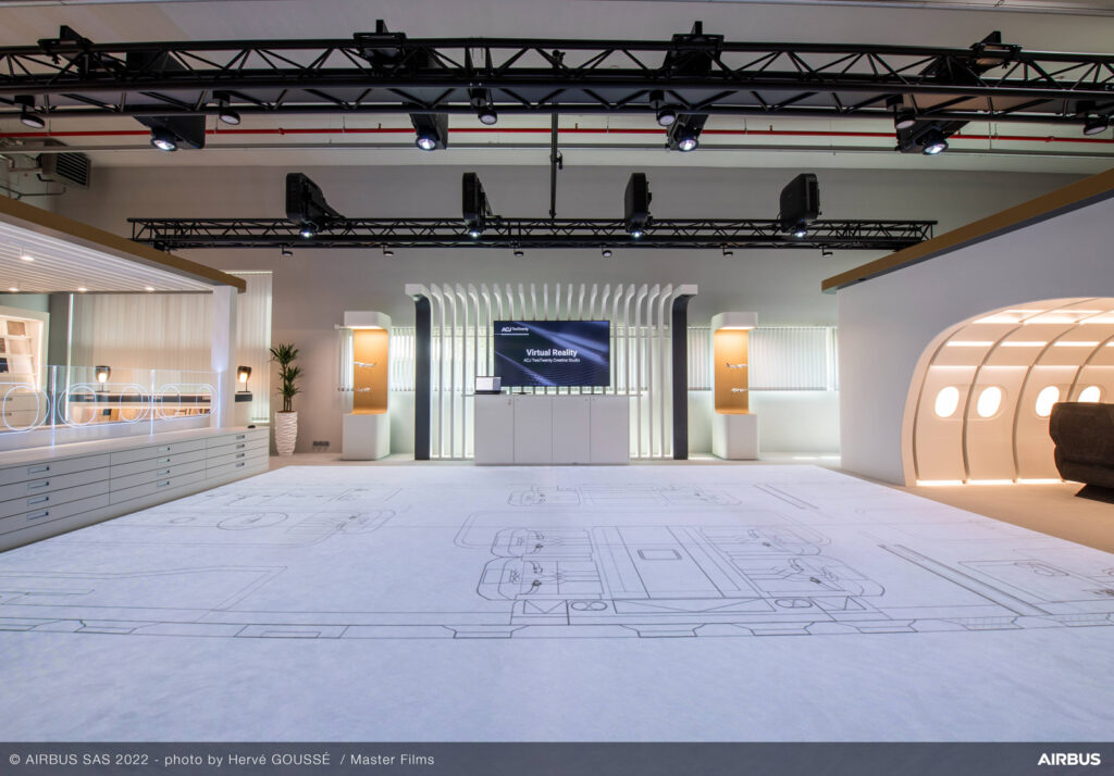El estudio dedicado a los clientes de ACJ exhibe una sección de tamaño real de la cabina ACJ TwoTwenty, que ofrece el doble de espacio y volumen que cualquier avión de la competencia, para que puedan personalizarlo y adaptarlo a su gusto. Con un uso integrado de la tecnología de realidad virtual complementado con maquetas configurables específicas del cliente, todos estos activos disponibles bajo un mismo techo hacen del estudio creativo una ventanilla única y atractiva para el diseño de interiores.