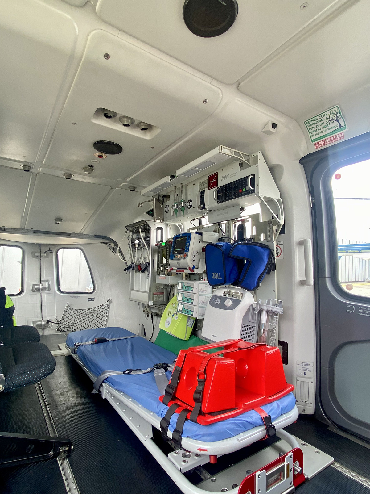 La única ambulancia helicoportada del país estará ahora dotada con un moderno ventilador mecánico, que ofrece versatilidad para su uso en diversos escenarios médicos, y un novedoso video laringoscopio para el manejo eficiente y oportuno de la vía aérea en vuelo.