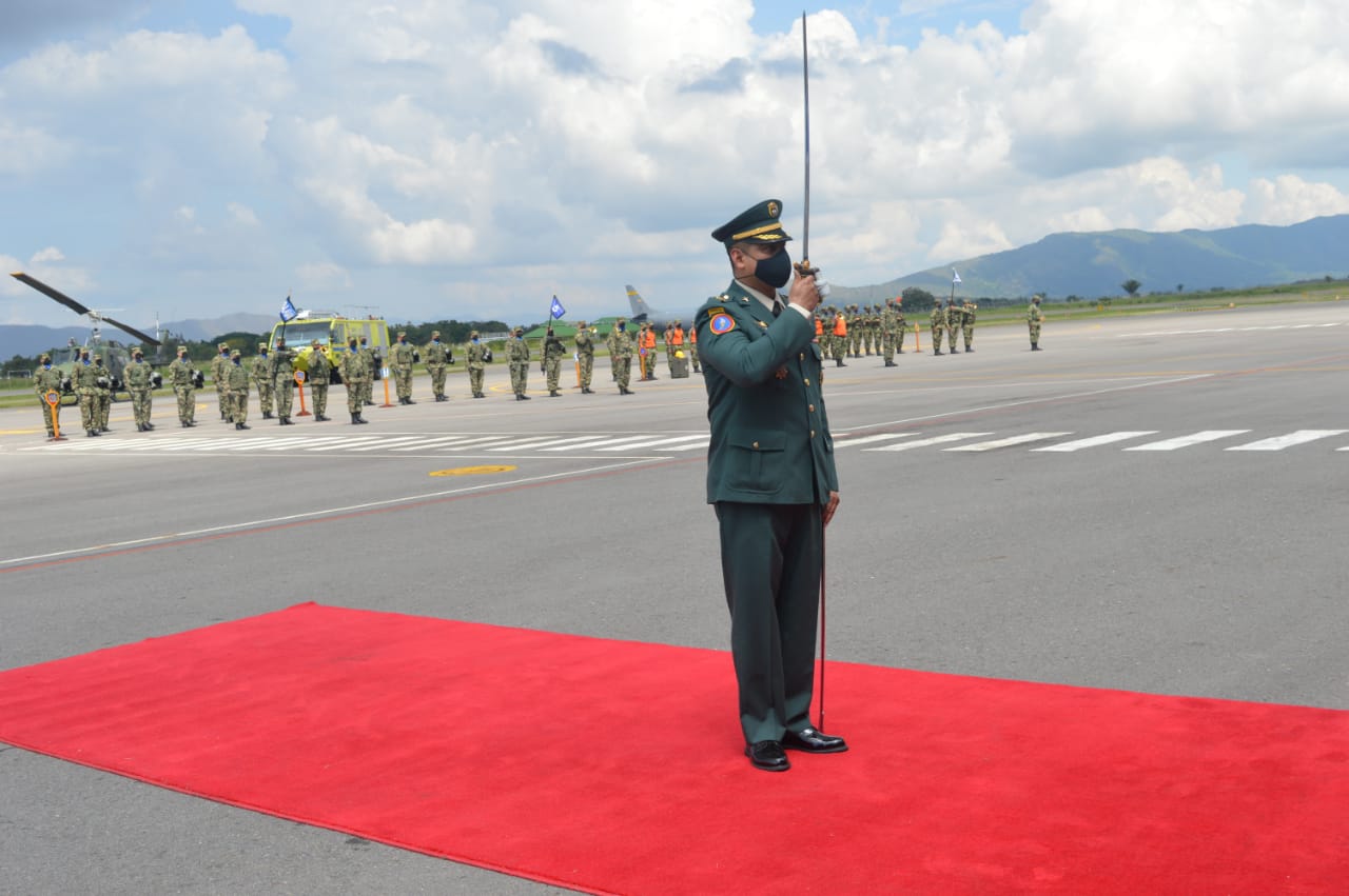 La ceremonia fue presidida por el señor Mayor General LUIS EMILIO CARDOZO SANTAMARIA, Comandante de la División de Aviación Asalto Aéreo, en compañía del señor Brigadier General GIOVANI VALENCIA HURTADO, Comandante del Centro Nacional de Entrenamiento y señores comandantes de unidades tácticas.