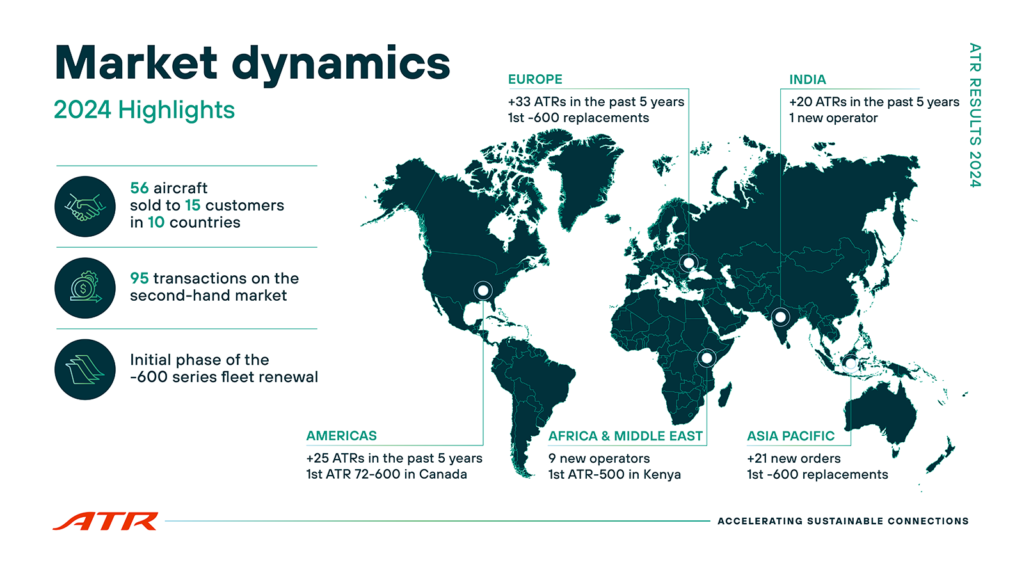 “En 2024, cumplimos lo que dijimos que haríamos. Mantuvimos las tasas de entrega, en condiciones difíciles, al tiempo que dimos la bienvenida a 16 nuevos operadores, vendimos 56 aviones, ofrecimos servicios de valor añadido y agilizamos las operaciones para mejorar la competitividad de nuestros productos y la rentabilidad de nuestros clientes. Esto continúa brindando a ATR bases sólidas para el futuro y demuestra que el mercado regional está ansioso por comprar aviones altamente eficientes con la economía, la capacidad y el rendimiento adecuados”.