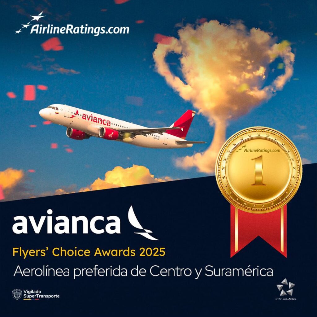 Avianca fue reconocida como la aerolínea preferida de Centro y Suramérica en los Flyers’ Choice Awards 2025, una iniciativa global de AirlineRatings.com, sitio líder en calificaciones de seguridad y producto en la industria aérea a nivel mundial. A diferencia de otros premios técnicos, estos galardones se basan únicamente en la votación de viajeros de todo el mundo, quienes eligieron sus aerolíneas favoritas por región.