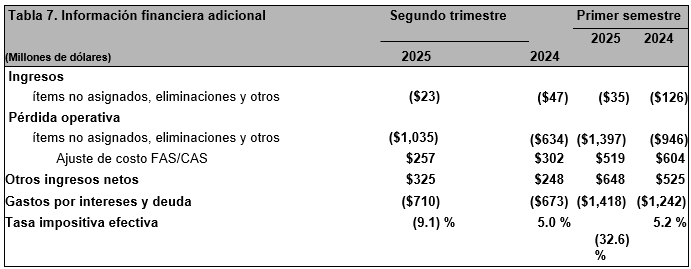 Los ítems no asignados, eliminaciones y otros incluyen un cargo por USD$ 445 millones derivado del acuerdo de no enjuiciamiento firmado en mayo de 2025 con el Departamento de Justicia de los Estados Unidos.