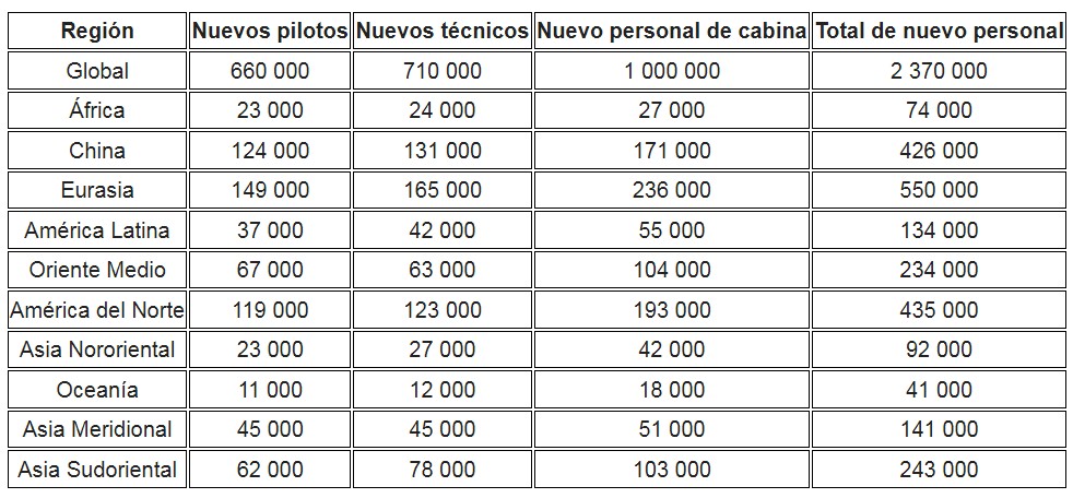 • La demanda de nuevo personal está impulsada principalmente por los aviones de pasillo único.