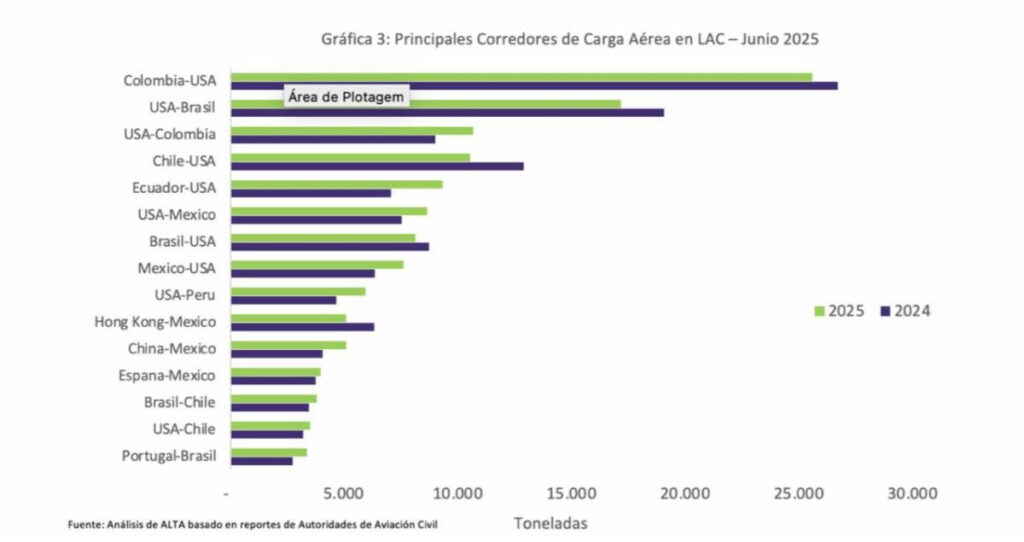 “En un entorno global tan desafiante, el crecimiento general del transporte de carga aérea en la región demuestra su rol esencial y el potencial que aún tienen nuestros países. Sin embargo, la caída del 9% en los flujos con Estados Unidos, el principal socio comercial de la región subraya la importancia de anticipar tendencias, ajustar capacidades y mantener la flexibilidad necesaria para responder a cambios repentinos en la demanda”, señaló Peter Cerdá, CEO de ALTA.