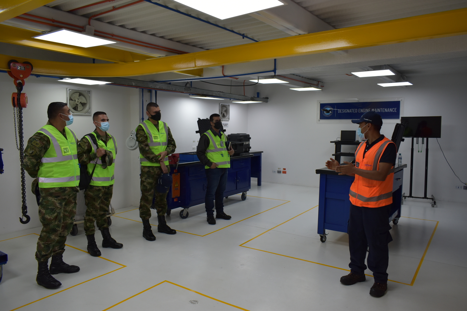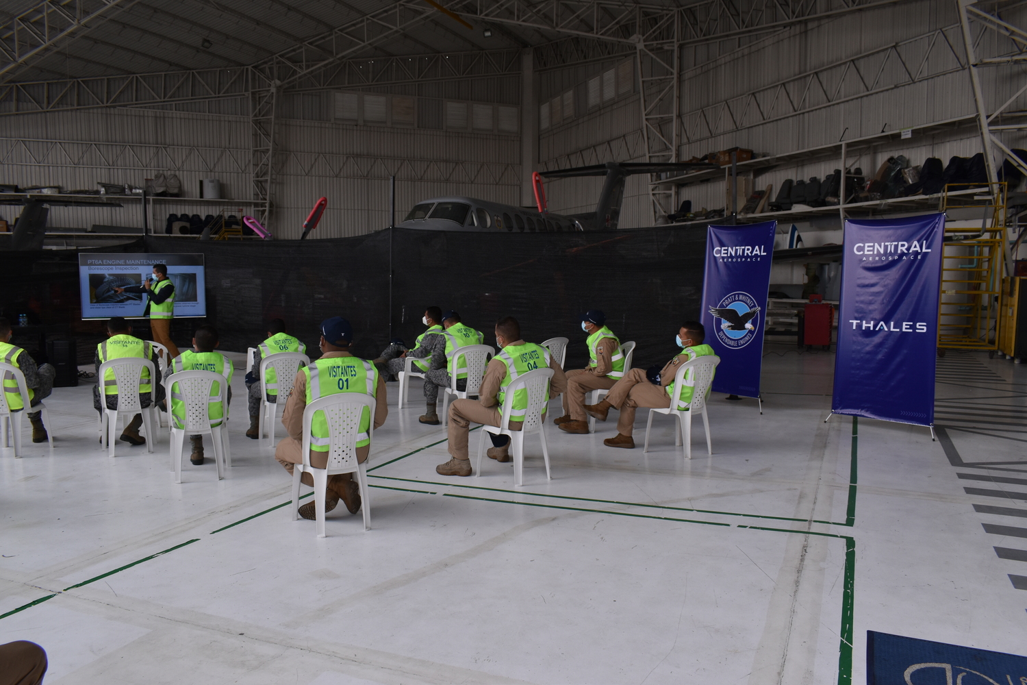 La agenda inició con una capacitación técnica dictada al personal de suboficiales y técnicos de las diferentes fuerzas militares de Colombia y Policía Nacional, en donde mostraron los servicios de mantenimiento de la línea de motores PT 6, así como una caracterización general los mismos. La inducción estuvo a cargo de un representante técnico de Central Aerospace, quien está certificado por parte de Pratt & Whitney Canada para llevar a cabo todos estos adiestramientos y orientación. Posteriormente, se realizó un recorrido por las instalaciones de la compañía con el objetivo de mostrar las capacidades de sus talleres especializados tanto para motores PT 6 como para reparaciones y pruebas de generadores de motores y otros componentes Thales.