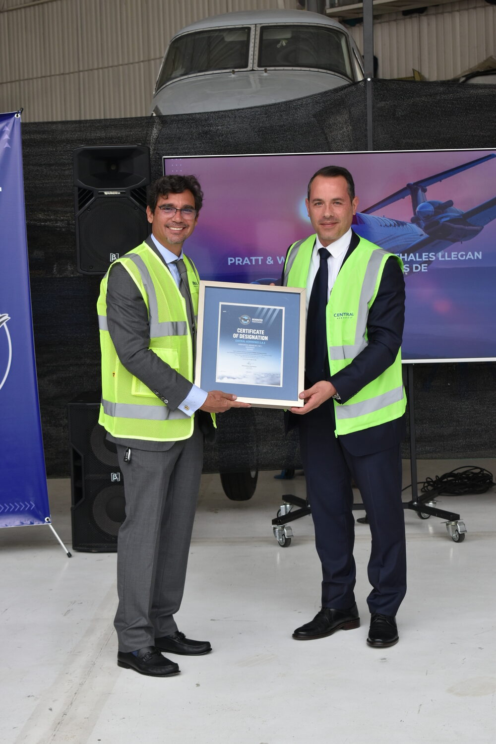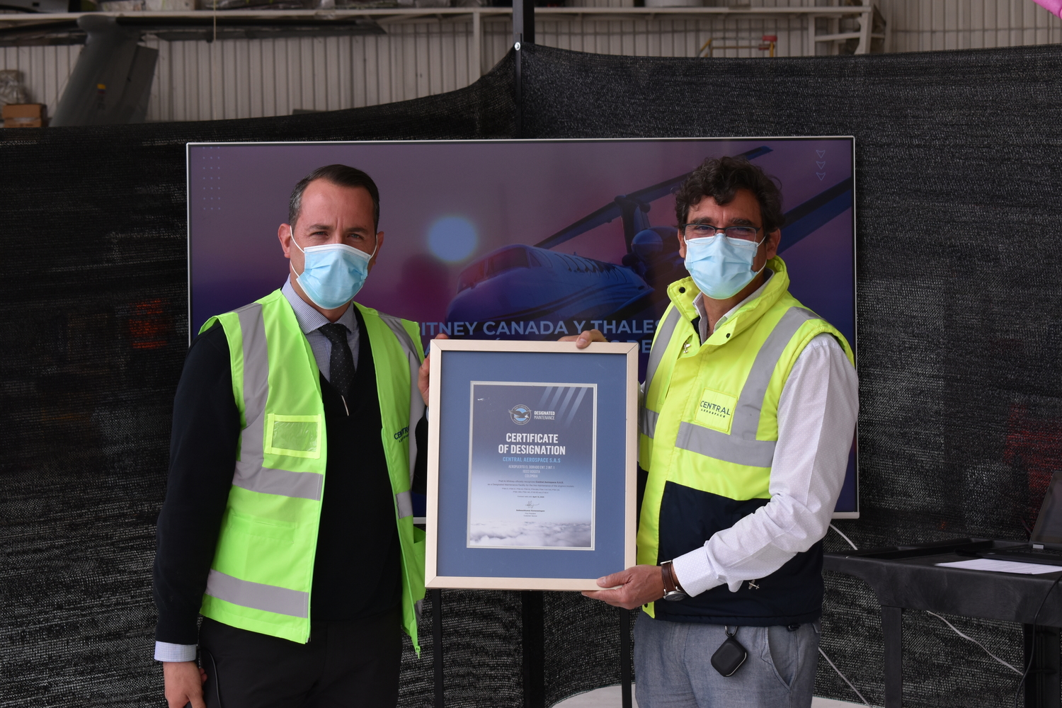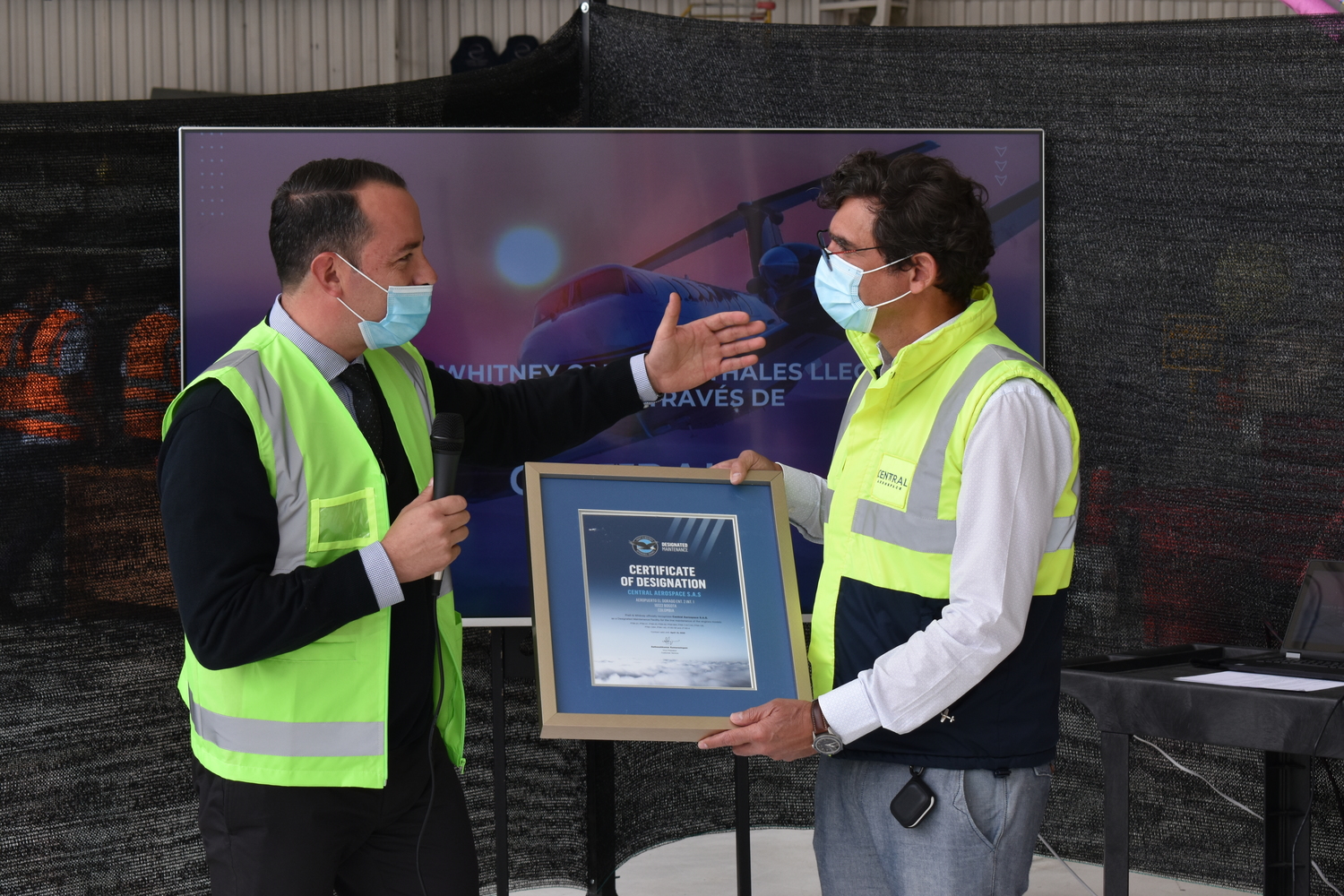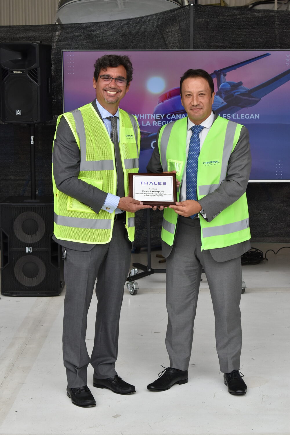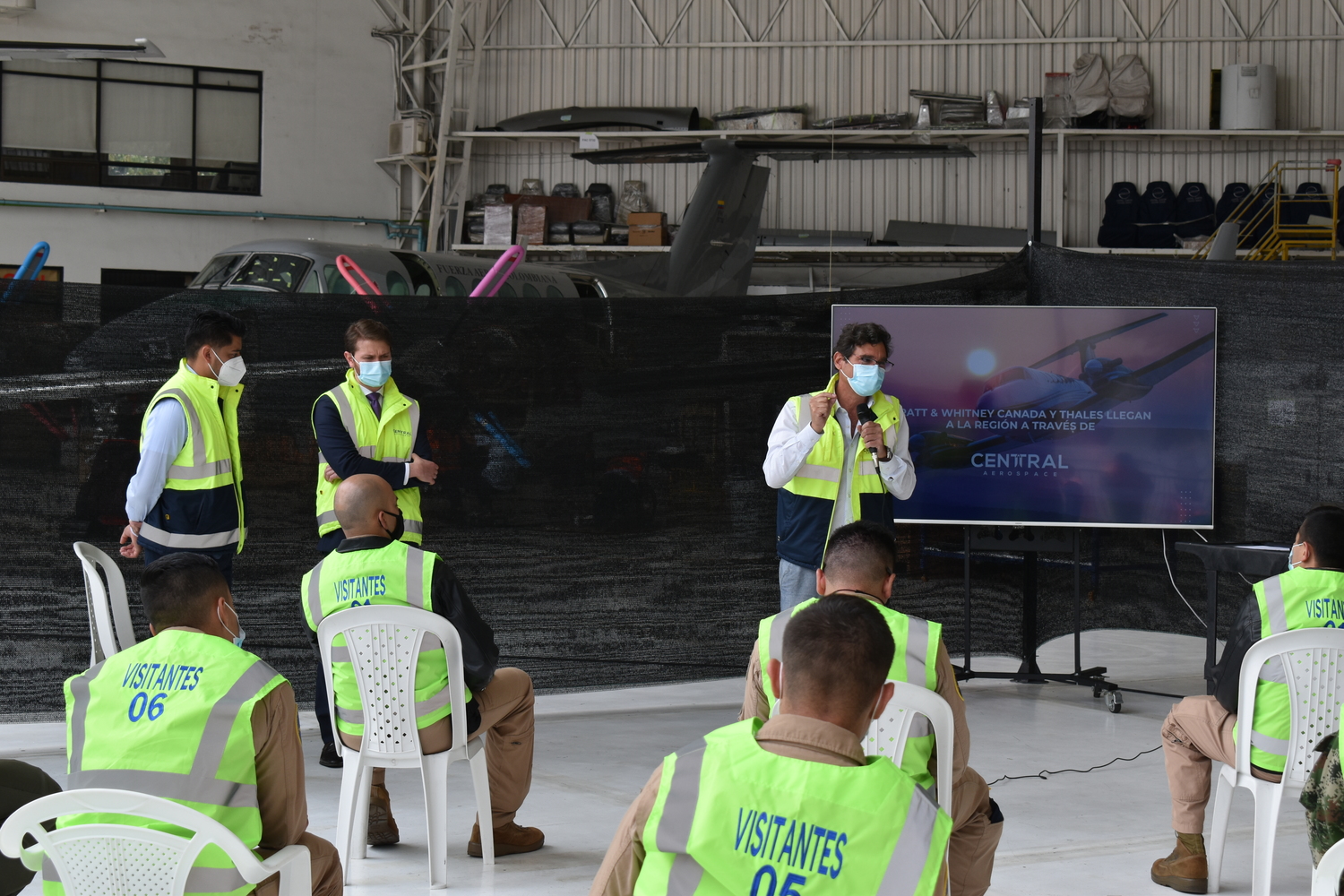 En un acto protocolar, el señor Nicolás Restrepo, gerente regional de ventas de Pratt & Whitney Canada, y el señor Óscar Rojas, gerente regional de cuentas de Defensa de Thales, le otorgaron dos placas de reconocimiento a Rodrigo Perdomo, gerente general de Central Aerospace, como símbolo de la formalización y puesta en marcha de este nuevo proyecto. Cabe destacar que durante la realización del evento, se tomaron en consideración todos los protocolos de bioseguridad y cuidados necesarios para preservar la seguridad tanto de los asistentes como del equipo anfitrión.