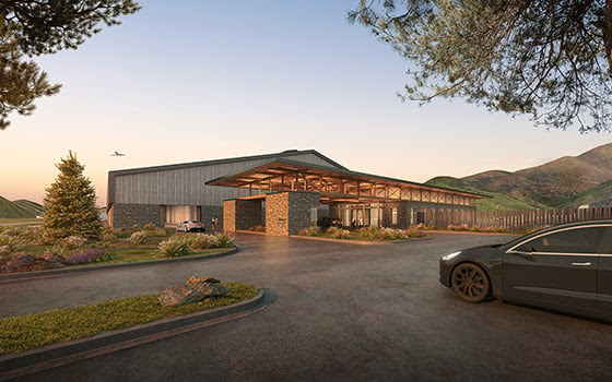 Clay Lacy Aviation ha utilizado la inspiración arquitectónica del valle del río Wood para implementar opciones de diseño de piedra, vigas de madera natural y luz para crear espacios cálidos y acogedores, al tiempo que honra la Reserva de cielo oscuro de Idaho central. Al igual que todas las demás instalaciones de Clay Lacy desde 2019, el nuevo FBO logrará la neutralidad de carbono y se espera que reciba la certificación LEED Gold por sostenibilidad.