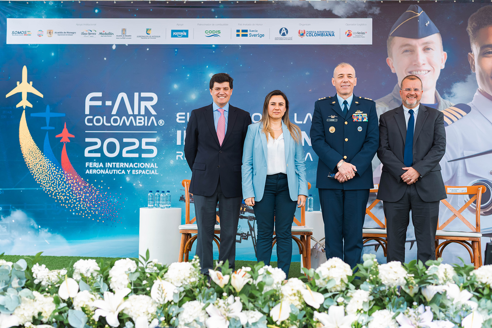 “Para Suecia es un honor ser país invitado en esta edición de F-AIR. Recibimos con orgullo esta invitación que es reflejo de una historia de relaciones diplomáticas entre Suecia y Colombia de más de 150 años. La industria aeronáutica y espacial sueca ha sido un motor económico y también un símbolo de nuestro compromiso con la innovación y la sostenibilidad. Queremos compartir nuestra experiencia en esta edición y reflexionar juntos sobre ¿cómo nos imaginamos la aviación del futuro? Estamos convencidos de que además de tecnología de punta, el sector aeronáutico y espacial es protagonista del desarrollo sostenible, del trabajo en equipo en favor de la innovación, de la igualdad de género y mucho más”, aseguró Helena Storm, Embajadora de Suecia en Colombia.