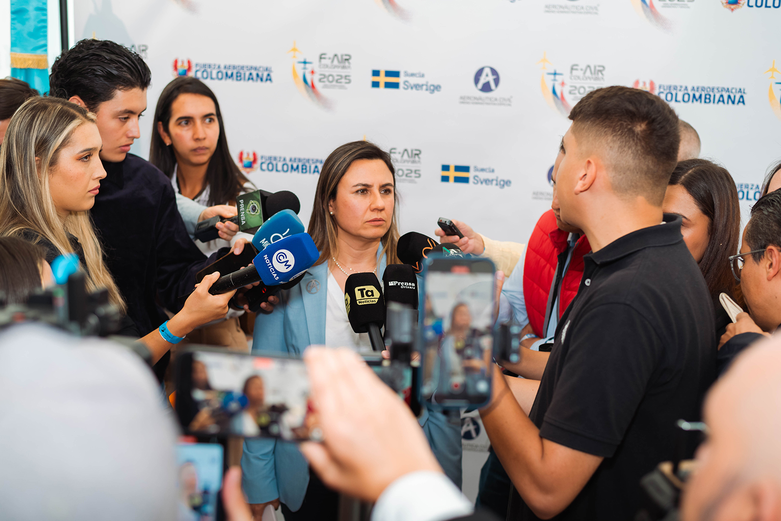 “La F-AIR COLOMBIA 2025 es la muestra de las capacidades que Colombia tiene en materia de aviación y cada dos años es reconocida a nivel mundial. Este año con Suecia, país invitado de honor; será un escenario que desde Rionegro permitirá no solo disfrutar de impactantes espectáculos aéreos sino de una nutrida agenda académica y la posibilidad de demostrar cómo el país avanza a pasos agigantados en materia de producción de combustibles sostenibles que harán de la aviación más limpia. Así mismo, se podrá hacer parte de una nueva versión de F-DRONE, una vitrina demasiado importante de la aviación no tripulada”, destacó Liliana Ospina Arias, directora general (e) de la Aerocivil.