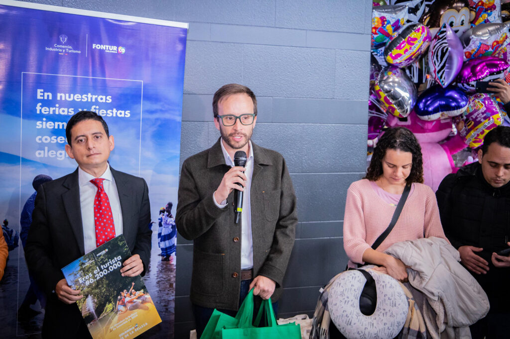El recibimiento tuvo lugar en la terminal aérea más importante del país, a donde llega la gran mayoría de visitantes extranjeros no residentes para dirigirse a otras regiones de Colombia.