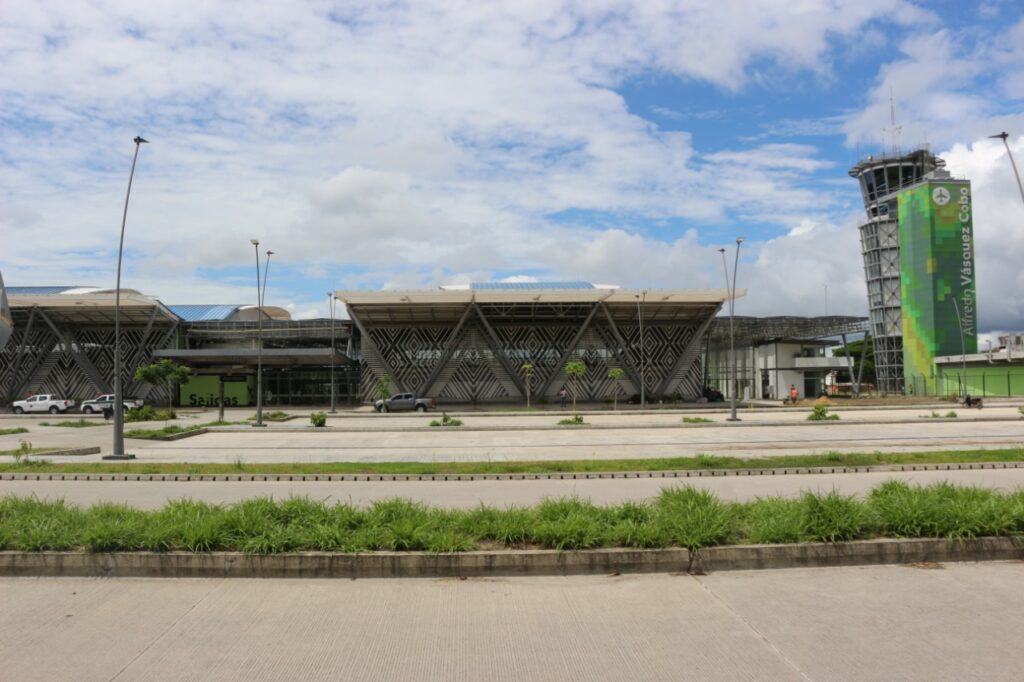 Aeropuerto Alfredo Vásquez de Leticia. La Aerocivil destinó $244.200 millones para culminar las obras en este aeropuerto, resolviendo los obstáculos que las tenían paralizadas; es así como se finalizó la construcción de la terminal aérea más grande del sur del país, pasando de 1.704 a 11.136 metros cuadrados, la rehabilitación y ampliación de la pista, que pasó de 2.100 metros a 2.400 metros; la construcción y ampliación de una nueva plataforma que pasó de 16.206 a 43.071 metros cuadrados, y la construcción de la torre de control, reconociendo no solo su ubicación estratégica, sino potencializando a Leticia como destino turístico de clase mundial.