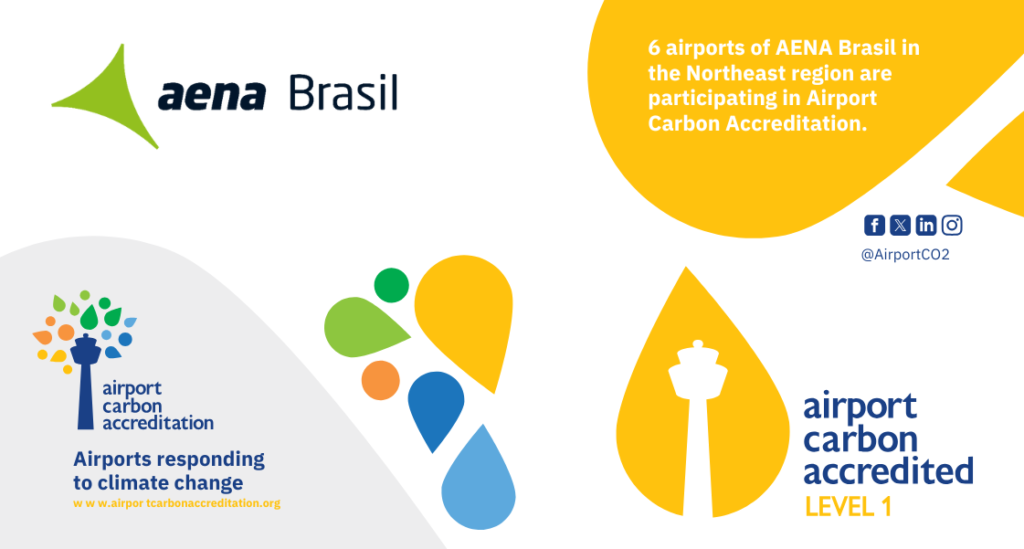 El Consejo Internacional de Aeropuertos para América Latina y el Caribe (ACI-LAC) se complace en anunciar que seis aeropuertos operados por Aena Brasil en la región noreste de Brasil acaban de recibir la certificación de Nivel 1 del programa de Acreditación de Carbono Aeroportuario (ACA) de ACI. Este nivel se otorga a los aeropuertos que han mapeado su huella de carbono, identificado las fuentes de emisión y calculado sus emisiones anuales.