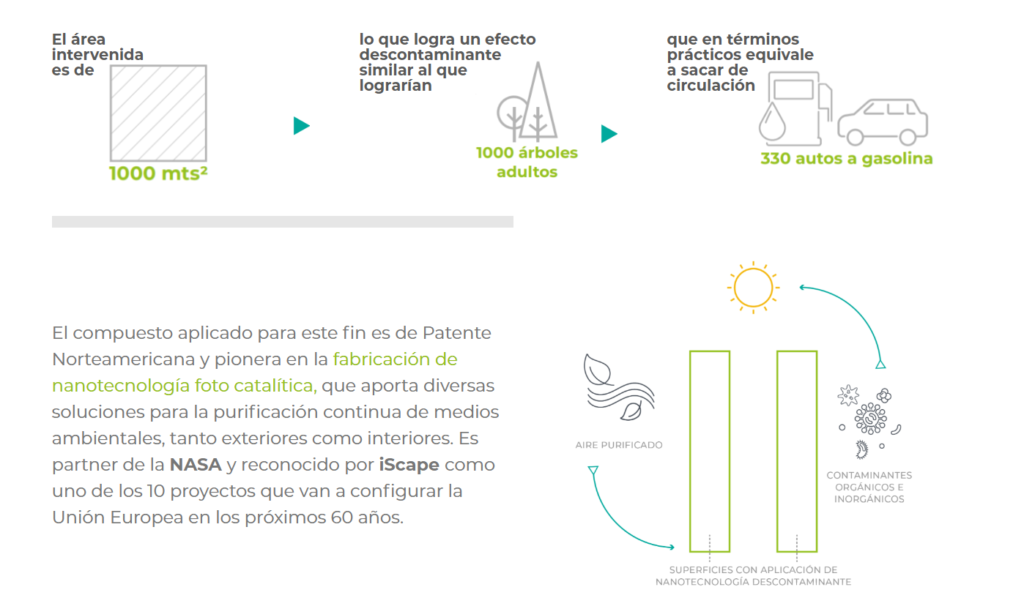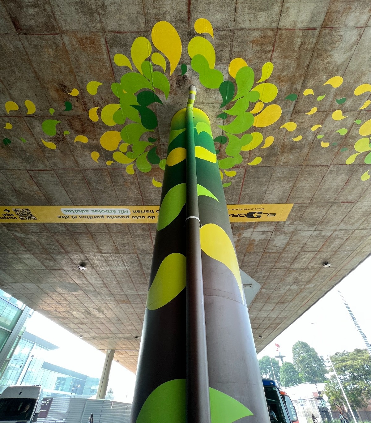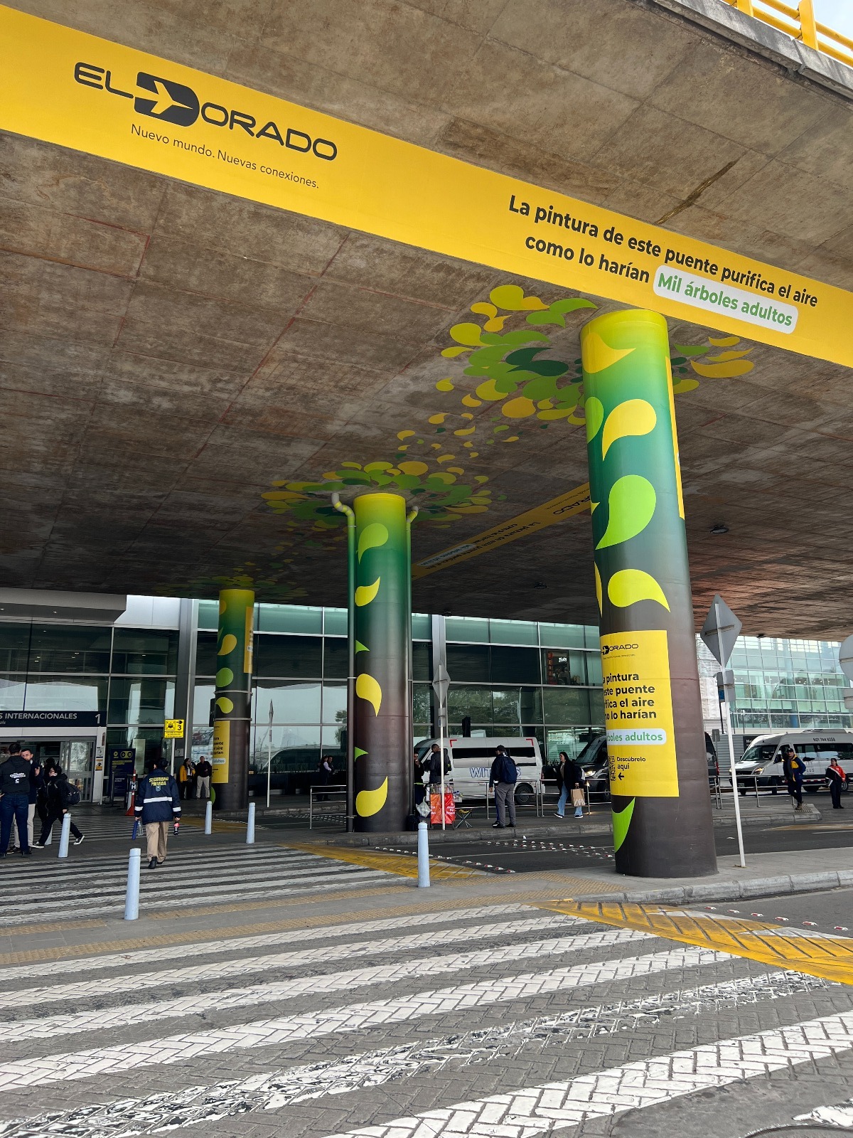 El Aeropuerto El Dorado sigue comprometido con el cuidado del medio ambiente y la lucha contra el cambio climático, por eso a través de la empresa Murarte Global, intervino 1.000 metros cuadrados de la Terminal con una pintura que contiene nanotecnología fotocatalítica. Esta tecnología, está inspirada en la forma en que las plantas purifican el ambiente a través de la fotosíntesis, usa la luz, el aire y la humedad, para eliminar contaminantes que afectan la calidad del aire.