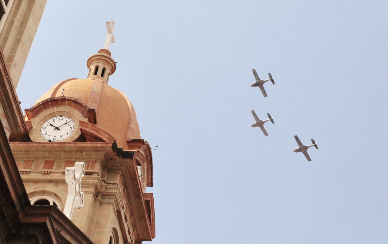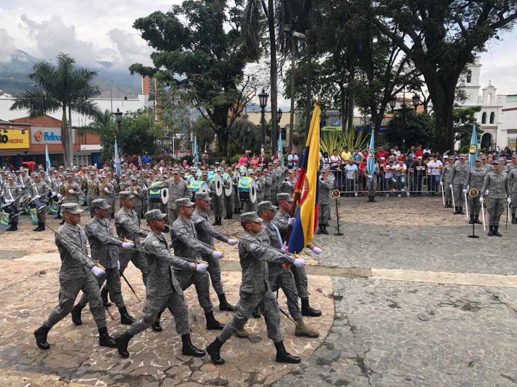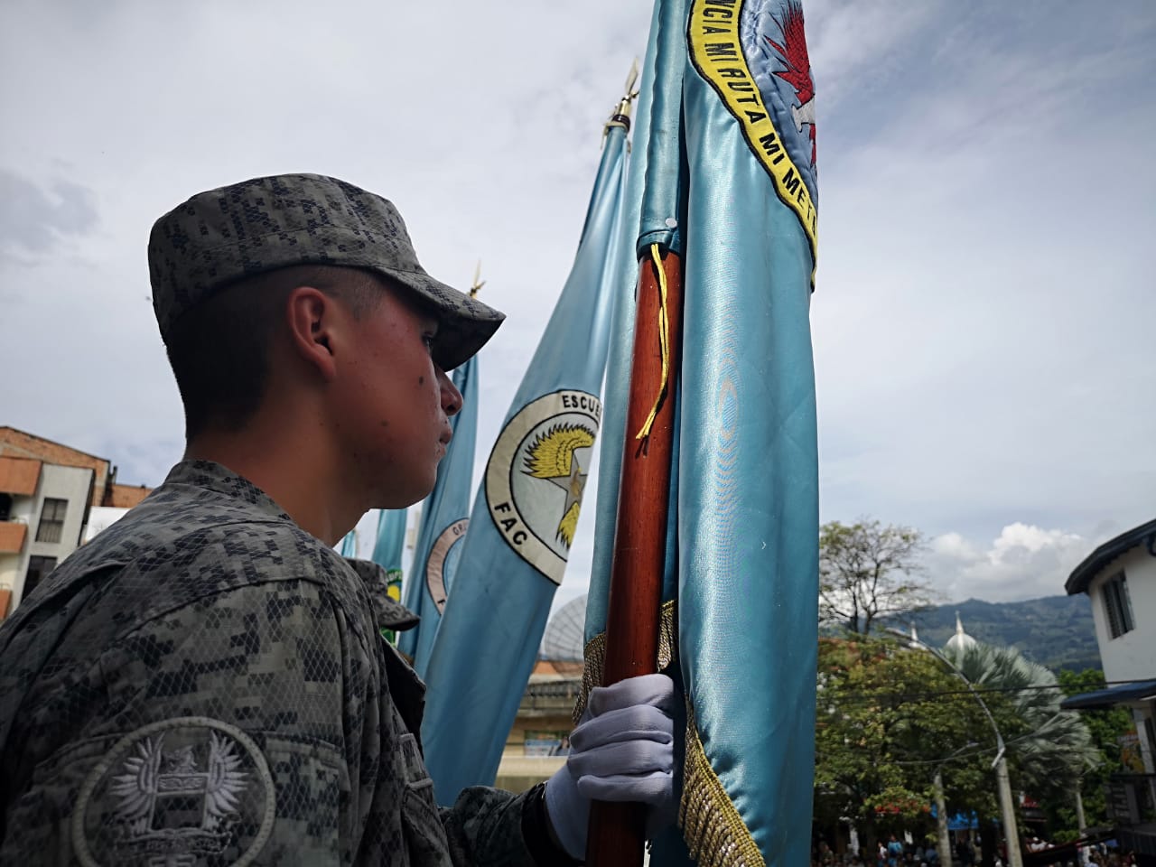 Por esta razón el municipio de Bello, Antioquia, se vistió de azul, con más de 350 hombres y mujeres quienes acompañaron un desfile militar por las principales calles, demostrando la marcialidad de los Cadetes de la Escuela Militar de Aviación, además de la celebración religiosa que se llevó a cabo en la Parroquia Nuestra Señora del Rosario.
