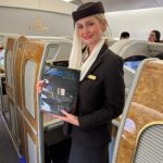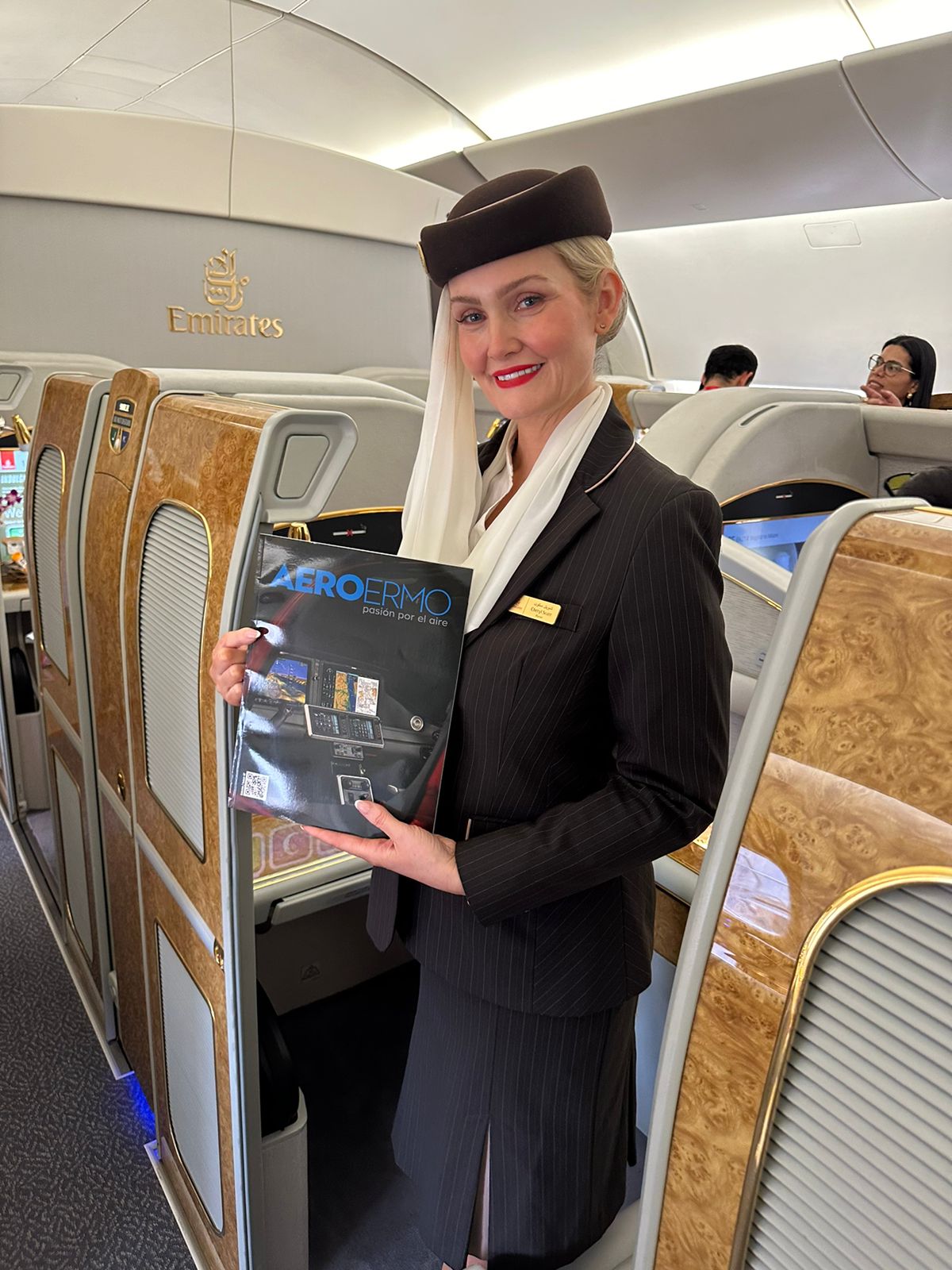 Después de la ceremonia de bienvenida entre la aerolínea y los funcionarios del aeropuerto, Emirates presentó su avión Boeing 777-300ER a dignatarios, representantes del gobierno, medios, invitados y miembros de la industria de viajes. El avión cuenta con ocho suites privadas en primera clase, 42 asientos reclinables en clase ejecutiva y 304 asientos espaciosos en clase económica para el servicio diario.