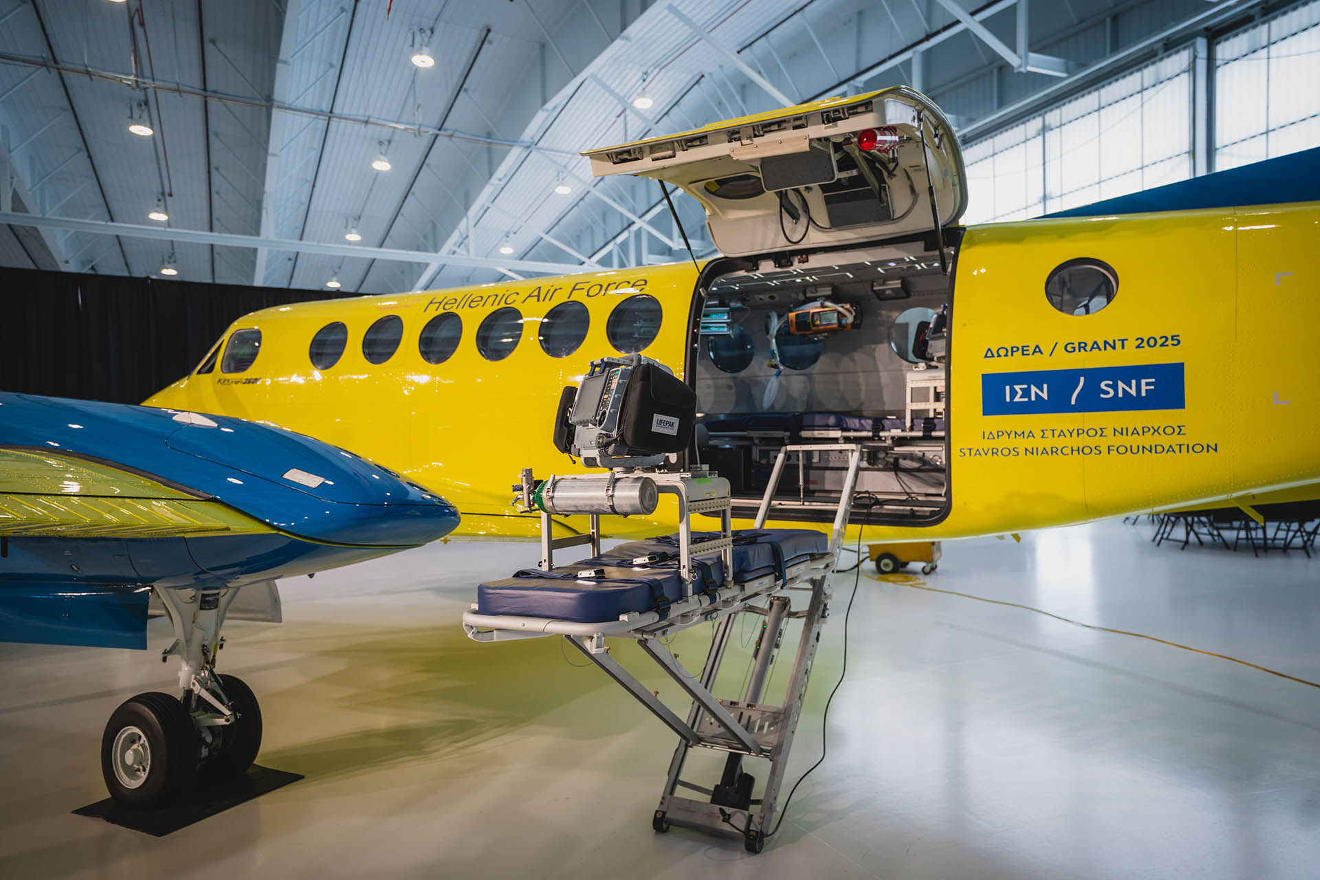 Fargo Jet Center (FJC) anuncia con orgullo la finalización y entrega de un Beechcraft King Air 360C, recién equipado y dedicado a la aeromedicina, al Centro Nacional de Atención de Emergencias (EKAB) del Ministerio de Salud de Grecia. Con el generoso apoyo de la Fundación Stavros Niarchos (SNF) como parte de su Iniciativa de Salud Global (GHI), la aeronave será operada por la Fuerza Aérea Helénica como parte del programa nacional de ambulancias aéreas de Grecia, en expansión.