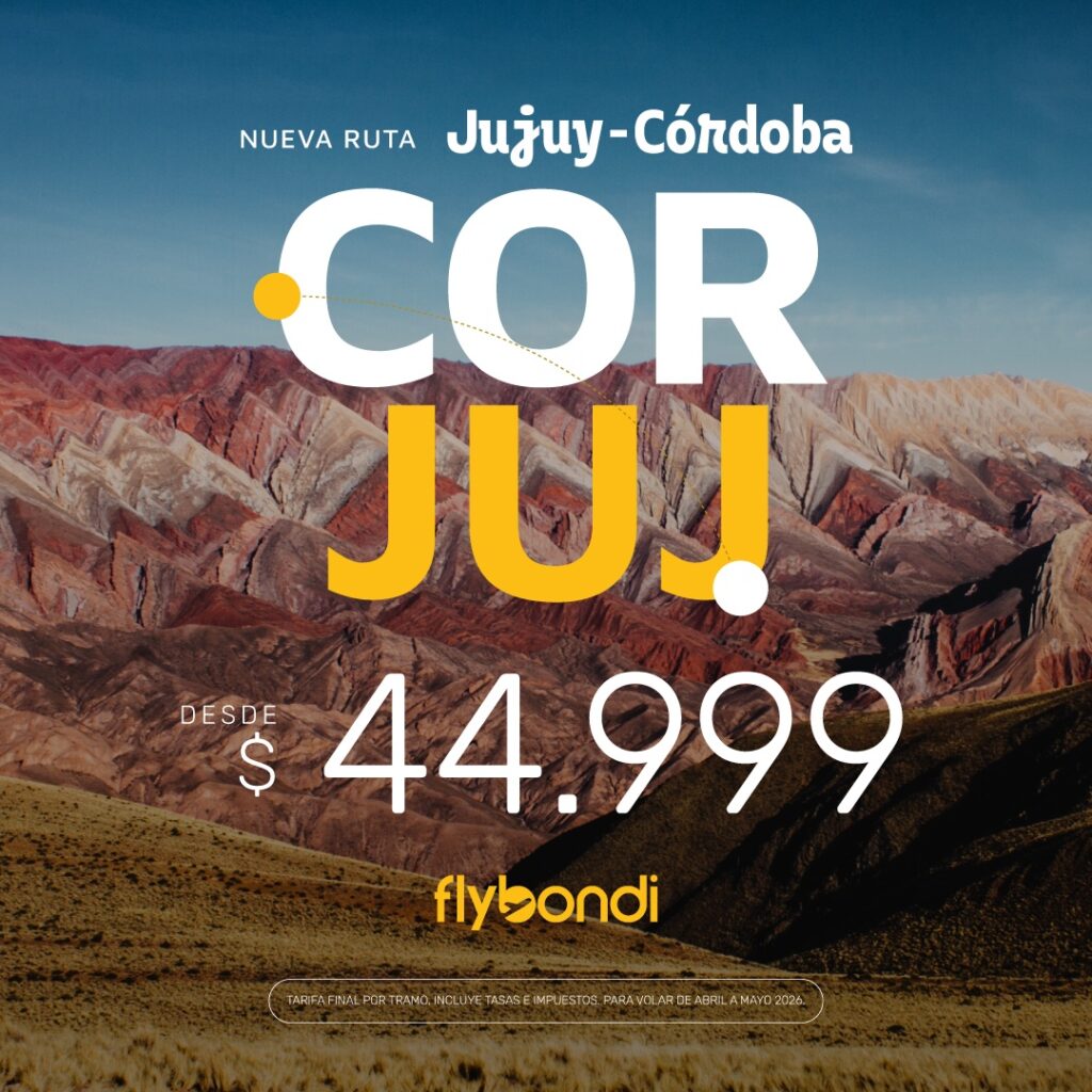 Flybondi, la primera aerolínea low cost de Argentina, anuncia el lanzamiento de una nueva ruta que conectará de manera directa Jujuy con Córdoba, a partir del 2 de abril. La nueva ruta tendrá tres vuelos semanales, los días martes, jueves y sábado, con tarifas promocionales desde $44.999 final por tramo. Los tickets ya se encuentran disponibles en www.flybondi.com.