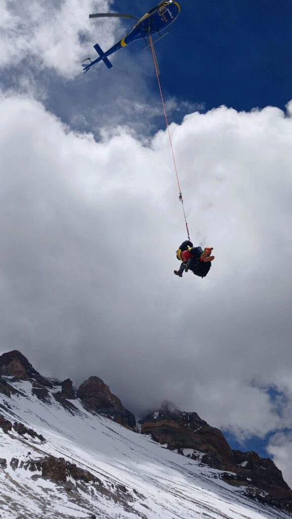 Diego Góngora, uno de los socios de HelicoptersAR, recuerda la determinación del equipo ante el desafío: “Cuando el seguro del andinista consultó si podíamos evacuar a esa altura, nuestra respuesta fue un ‘sí’ rotundo. No por exceso de confianza, sino por años de entrenamiento y el respaldo de una máquina en la que confiamos ciegamente”. Debido a que el terreno no permitía el aterrizaje, utilizaron una eslinga de corto alcance para izar al deportista en una maniobra de precisión milimétrica.