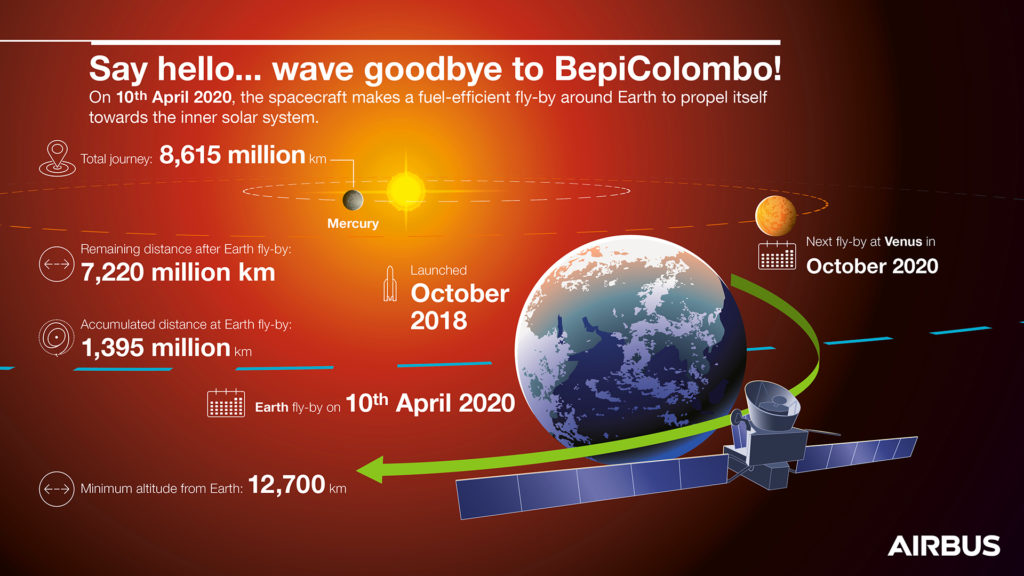 La misión BepiColombo construida por Airbus realizará un sobrevuelo de la Tierra el 10 de abril de 2020 en su épica trayectoria hacia Mercurio.