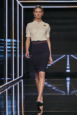 Teresa Helbig ha conseguido los aplausos del público con sus trabajados patronajes. El público asistente al desfile ha podido disfrutar de 30 estilismos de hombre y mujer que vestirán en el mes de mayo a los 6.500 empleados de Iberia a bordo de sus aviones y en los aeropuertos en los que opera la compañía. Teresa ha creado para Iberia cerca de una veintena de prendas y complementos que incluyen vestidos, faldas, pantalones, blusas, camisas, abrigos, bolsos, guantes, vestidos de premamá, cárdigans, blazers, chalecos, bufandas, jerseys de punto, polos o corbatas.