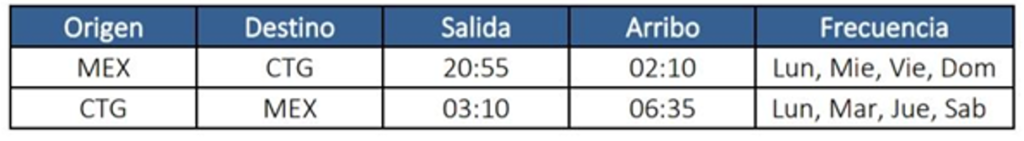 • La línea aérea operará en los próximos meses vuelos directos de la Ciudad de México a Cartagena de Indias, con cuatro frecuencias a la semana.
