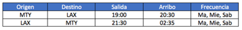 Como parte de su estrategia de expansión y su compromiso de fortalecer la conectividad aérea con Estados Unidos, Interjet inició este 4 de enero operaciones en su nueva ruta Monterrey-Los Ángeles, con el siguiente itinerario: