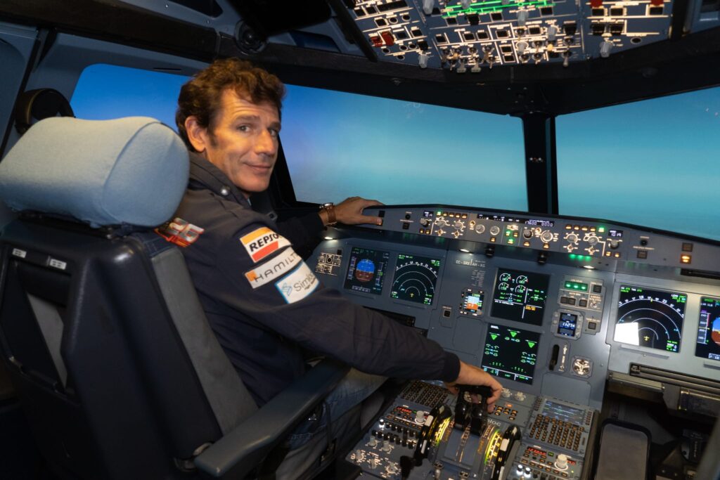 Como Comandante A330 en Iberia, Velarde no dejó pasar la oportunidad de probar el espectacular simulador Simloc FTD 1+MCC de A320 que Aerodynamics Academy tiene en fase de certificación. Tras el “vuelo” Velarde declaró: “Este simulador es una herramienta utilísima para hacer un curso de habilitación de A320. Es prácticamente igual que un full flight simulator, con la única diferencia que no tiene movimiento. Estoy muy impresionado, porque nunca había visto un centro de formación como éste”.