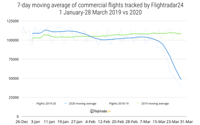 Los vuelos comerciales han caído sustancialmente por culpa de las restricciones de movilidad – Flightradar 24