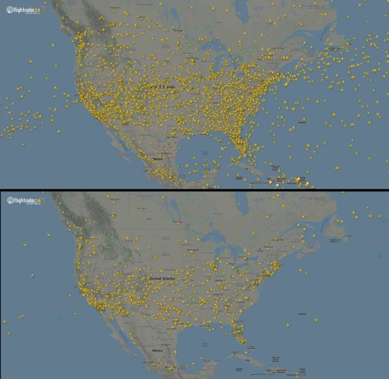 Vuelos en EE. UU. el 4 de marzo vs. el 4 de abril de 2020 – Foto Flightradar24