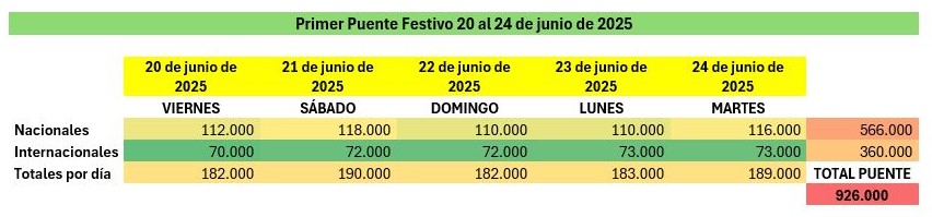 Según estimaciones de la Oficina de Analítica de la Aerocivil, se espera que aproximadamente 566.000 viajeros se desplacen dentro del territorio nacional, mientras que 360.000 pasajeros tomarán vuelos internacionales desde y hacia Colombia. Estas cifras reflejan la recuperación del sector aéreo, el crecimiento de la demanda de transporte y el continuo interés tanto de colombianos como de turistas extranjeros por descubrir la riqueza cultural, gastronómica y paisajística del país.
