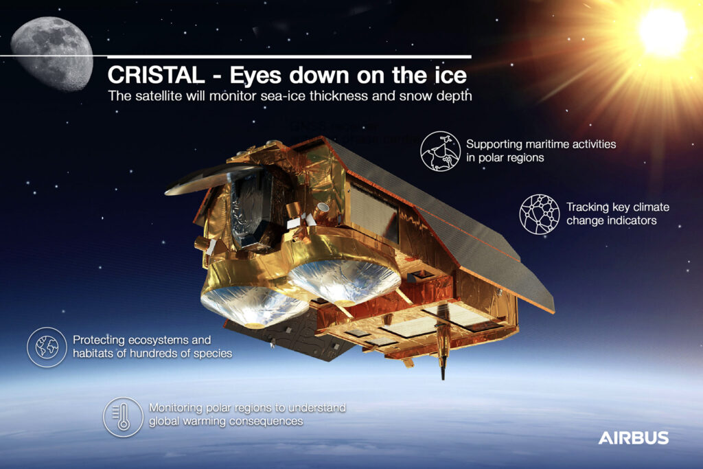 CRISTAL llevará un avanzado altímetro multifrecuencia que medirá el espesor del hielo marino y las elevaciones de la capa de hielo, indicadores clave del cambio climático. El altímetro de CRISTAL medirá por primera vez la cobertura de nieve de las capas de hielo, lo que mejorará notablemente la calidad de los datos en comparación con su predecesor CryoSat-2. Estos datos apoyarán las operaciones marítimas en los océanos polares y contribuirán a una mejor comprensión de los procesos climáticos.
