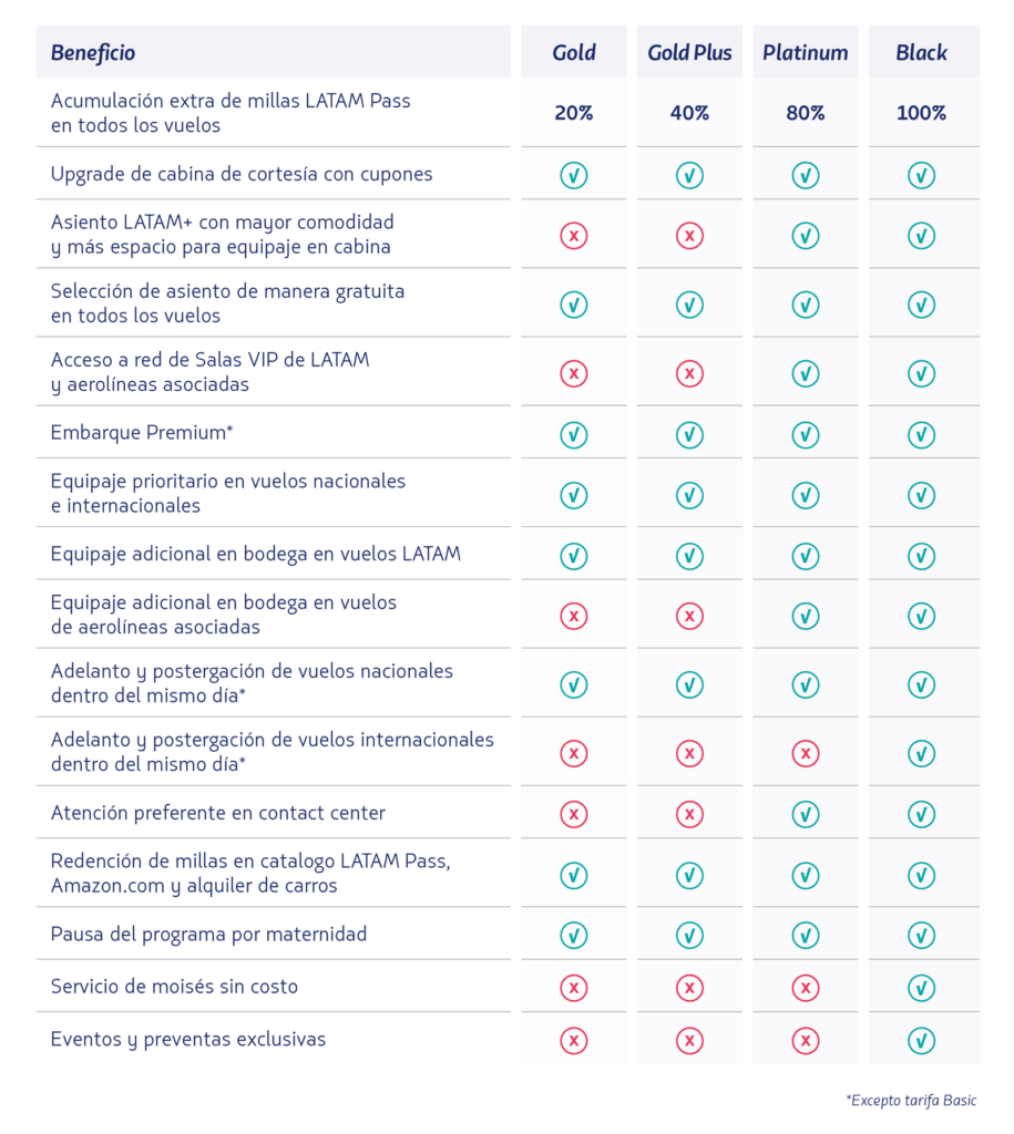• El estatus que el viajero tenga en el programa de fidelización de otra aerolínea se igualará a la categoría Elite de LATAM Pass que sea equivalente: Gold, Gold Plus, Platinum o Black.