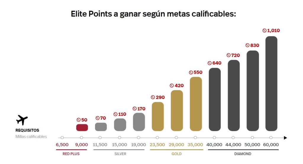 Los socios LifeMiles ganan “Elite Points” al alcanzar un estatus Elite y al cumplir con los requisitos de millas calificables establecidas entre niveles, como se visualiza en el siguiente cuadro:
