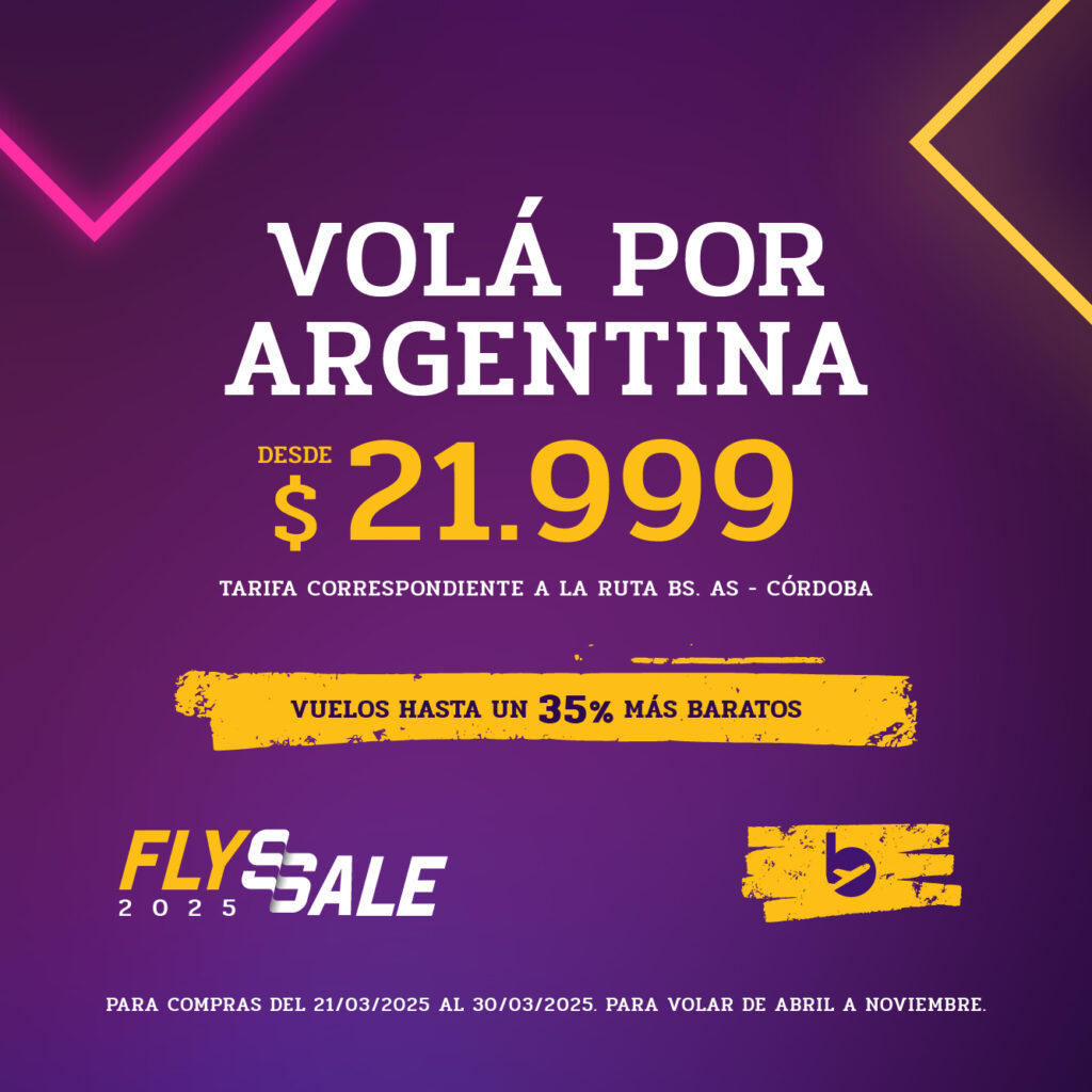 Aterriza una vez más el FlySale a Flybondi con hasta un 35% de descuento para viajar por todos sus destinos nacionales entre abril y noviembre de 2025. La promo estará disponible desde el viernes 21 hasta el domingo 30 de marzo, y los clientes de Club Flybondi tendrán un descuento extra como miembros.