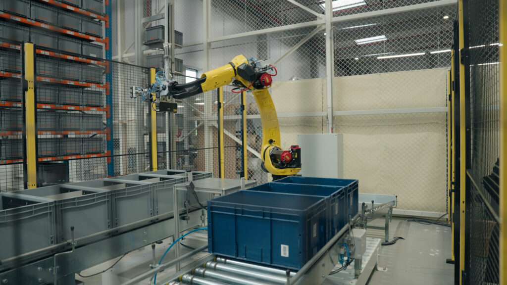 Proyecto de I+D de “Selección de piezas en contenedores” en Log’in: Una célula robótica integra visión artificial e inteligencia artificial para automatizar la selección de piezas en contenedores en condiciones logísticas reales. Foto: © Daher.