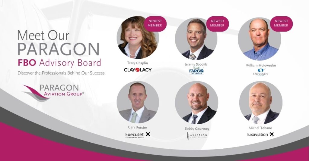 Como parte clave de la organización, el Consejo Asesor de FBO desempeña un papel fundamental al proporcionar a Paragon retroalimentación honesta, perspectivas del sector y recomendaciones estratégicas. Este dinámico grupo de propietarios, ejecutivos y gerentes clave de FBO trabaja en estrecha colaboración con Paragon para optimizar la eficiencia operativa, compartir las mejores prácticas y optimizar las estrategias de ventas directas y marketing.