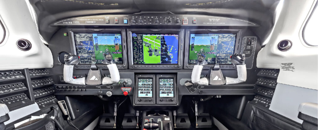 El M700 FURY cuenta con el sistema de aviónica G3000® de Garmin, una cabina de vuelo de cristal controlada por pantalla táctil. La suite de aviónica G3000 es la tecnología más sofisticada de Garmin disponible y ofrece el paquete más completo, intuitivo y tecnológicamente avanzado del mercado actual. Todo viene de serie en el M700 FURY junto con el sistema de seguridad HALO (incluida la tecnología Autoland de Garmin) que se certificó por primera vez en el M600/SLS.
