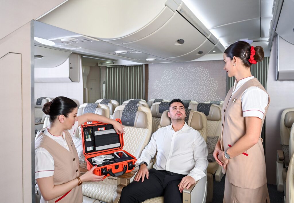 Emirates se ha aliado con Parsys Telemedicine para introducir equipos de última generación que permitirán a los pasajeros recibir atención médica de alta calidad y con mayor rapidez durante el vuelo. La aerolínea ha invertido más de 2,4 millones de dólares en el desarrollo conjunto de este nuevo equipo con Parsys, el cual se implementará en 300 aeronaves en los próximos años. La innovadora “estación de telemedicina” cuenta con tecnología avanzada, incluyendo videoconferencia en alta definición, evaluación remota de pasajeros, transmisión segura de datos y electrocardiograma Telecardia de 12 derivaciones. Esto permitirá que la tripulación altamente capacitada de Emirates pueda salvar vidas en situaciones de emergencia.