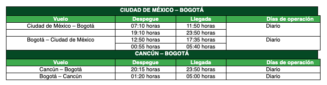 “Agradecemos a Viva Aerobus por su firme confianza en el potencial turístico de Bogotá al decidir aumentar su número de vuelos a la capital de México a menos de un año de su llegada a nuestra ciudad”, señaló Karol Fajardo Mariño, directora del Instituto Distrital de Turismo de Bogotá.