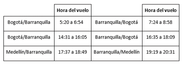 Como parte de su plan de expansión, que incluye la compra de 50 nuevos aviones Airbus A-320, la aerolínea contará con dos vuelos diarios entre Bogotá y Barranquilla y una frecuencia diaria entre Medellín y Barranquilla, una oferta más integral que responde a las necesidades de nuestros usuarios.