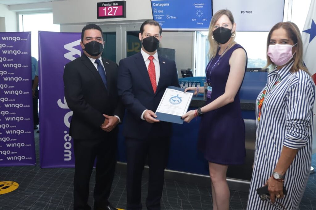 En un evento realizado este 12 de agosto, en el Aeropuerto Internacional de Tocumen de la Ciudad de Panamá, Wingo recibió su Certificado de Operación y Explotación de Servicio de Transporte Aéreo para Panamá.